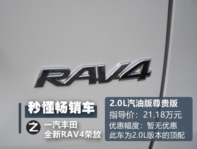 今天我们体验全新RAV4荣放的是2.0L汽油版尊贵两驱版,在整个车系中恰好是属于价格区间中等的车型,也是整个车系最走量的一款车型。而它的配置丰富程度已经可以用琳琅满目来形容了,即使到了价格最低的都市版车型,依然可以算得上是性价比出众,采用同样硬件基础却贵了将近4万元的尊贵版到底尊贵到哪儿了呢?我们一起接下去看。
