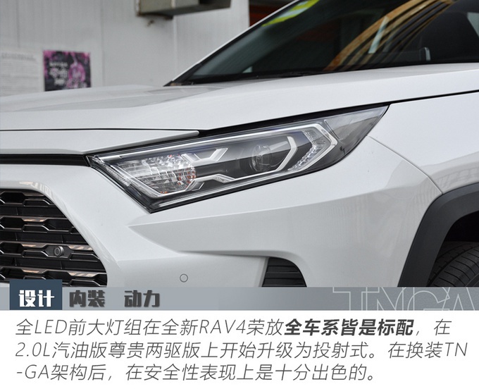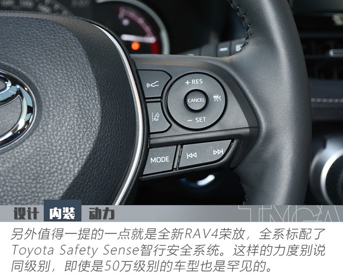 虽然我们今天的主角是全新RAV4荣放的2.0L汽油版尊贵两驱版,但实际上从TNGA架构加持以来,丰田各个车型的入门版本的安全配置同样高得惊人。全车八安全气囊,PCS预碰撞安全系统(带前方行人识别)、DRCC动态雷达巡航控制系统(带全速域跟车功能) 、LTA车道循迹辅助系统(带跟车行驶功能)、AHB自动调节远光灯系统、丰田智行互联、LED前大灯这些可能出现在100万车型标配的配置,居然在17.48万元的都市版上居然全部都有。而内饰细节无论设计和用料更加向雷克萨斯看齐的尊贵版,才是显得真正的尊贵。
