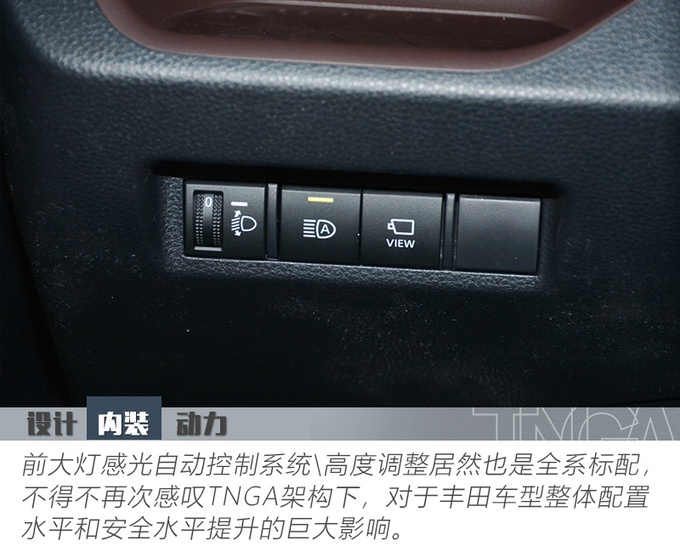 基于TNGA架构下的2.0L DYNAMIC FORCE发动机,可以达到最大热效率40%,这在整个行业里也算翘楚地位。同时匹配的Direct Shift-CVT变速箱,让平顺性和经济性与动力性取得了完美的平衡。而如果对动力性有更加追求的朋友可以选择同价位的2.5L双擎版精英版,配置水平会略微输于今天的尊贵版,但在驾驶质感上会有进一步的提升。