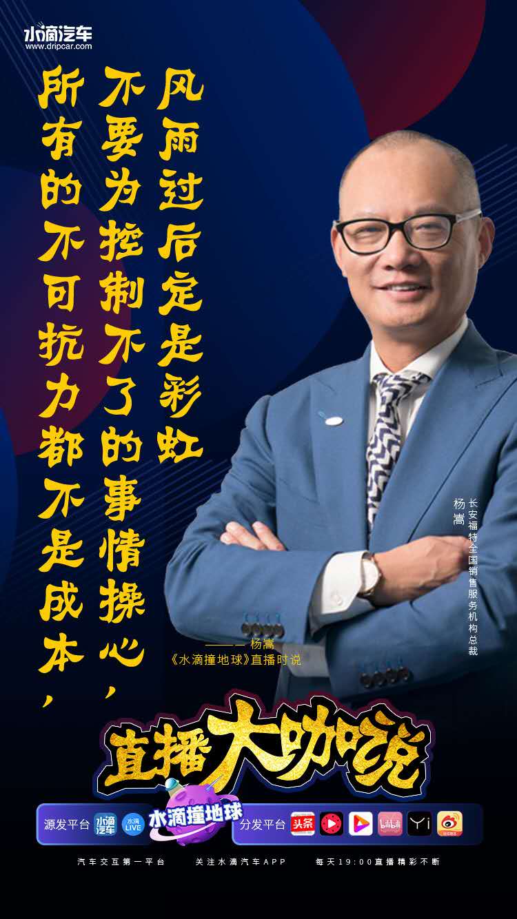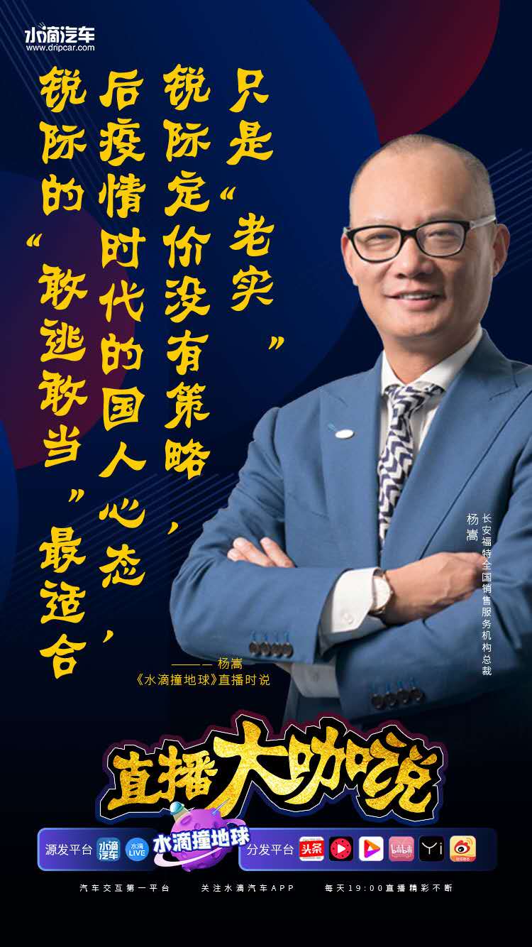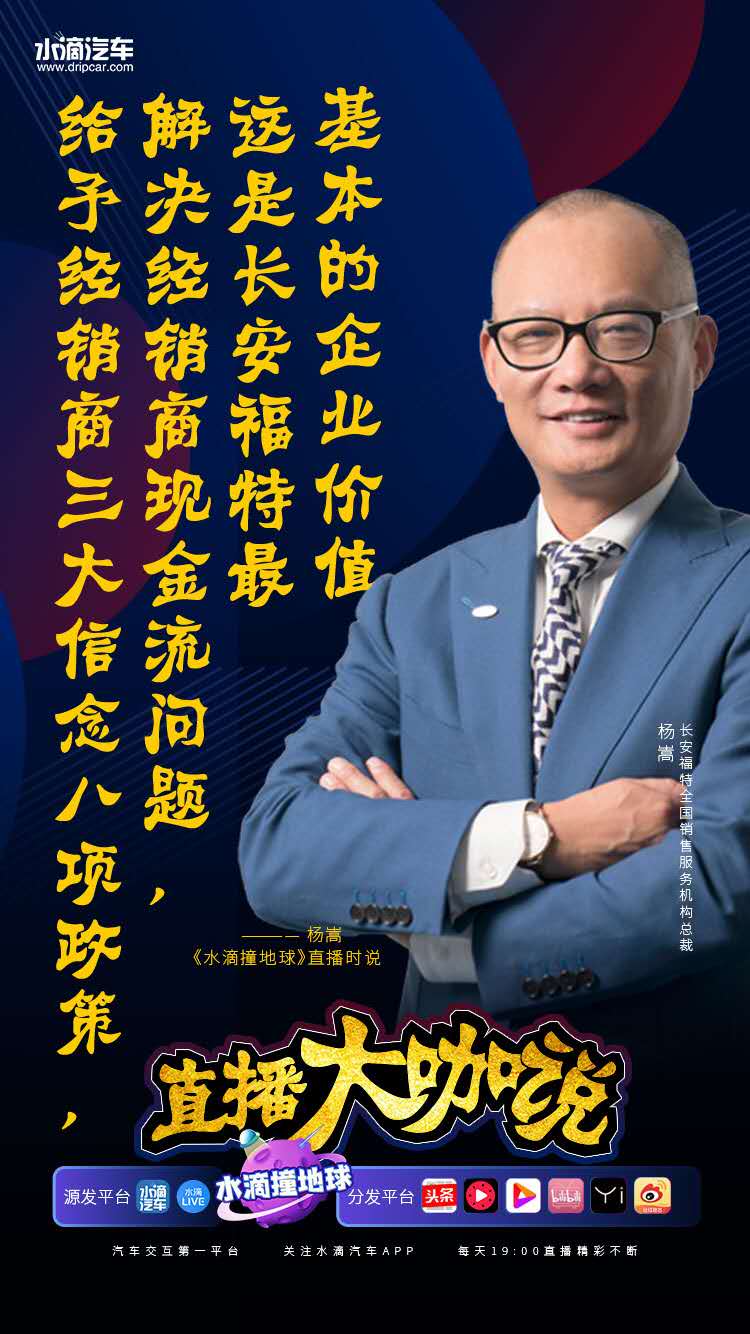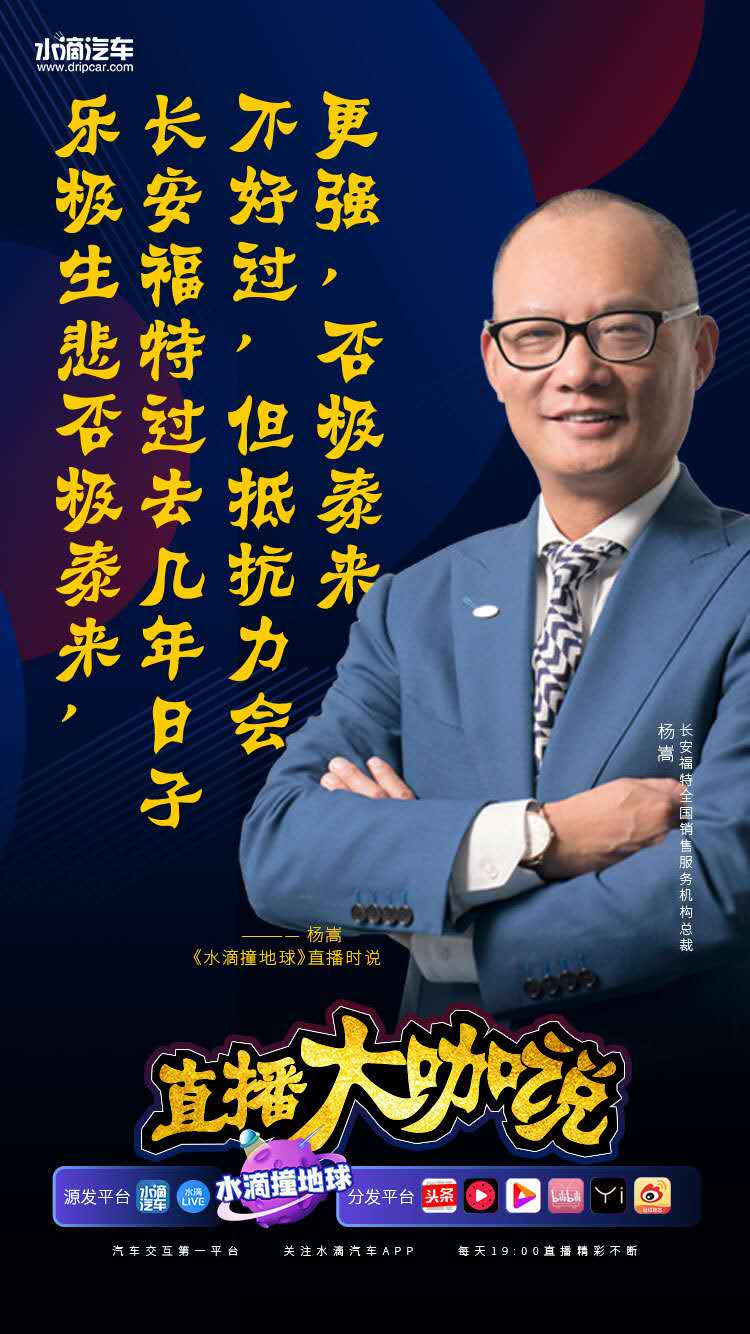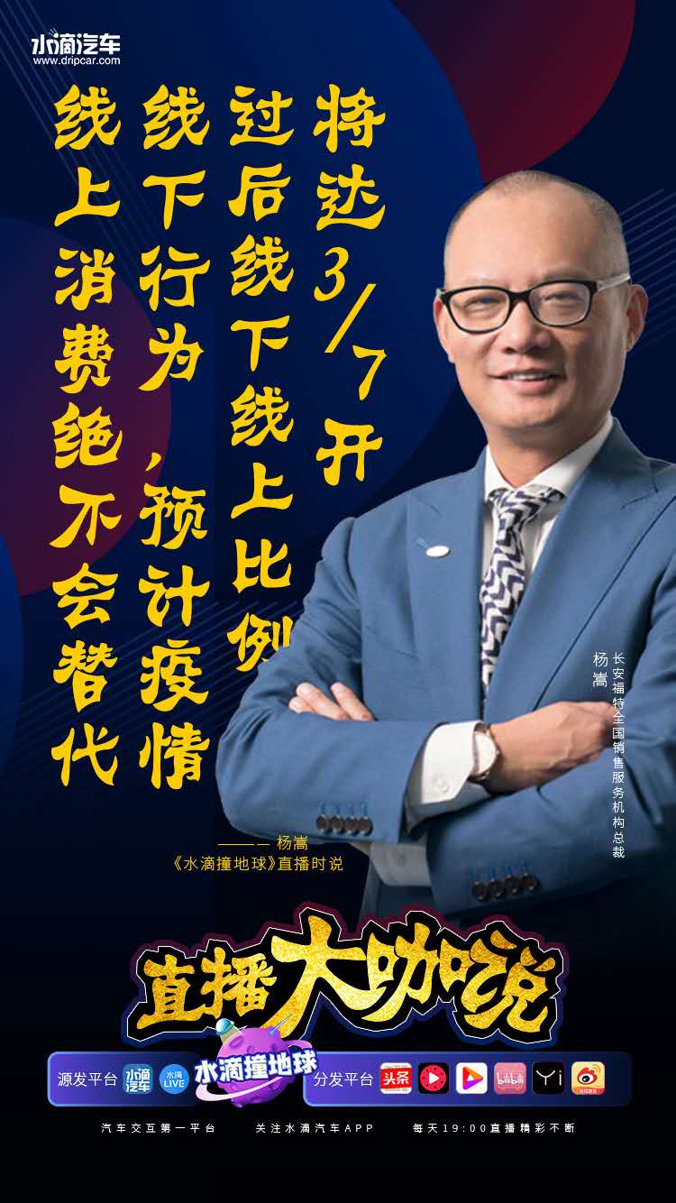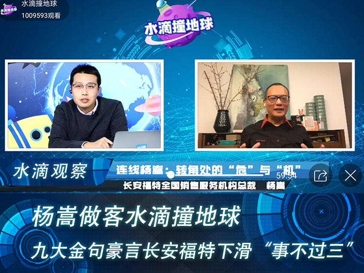 2月20日晚,长安福特全国销售服务机构总裁杨嵩,连线水滴汽车APP视频直播间。这位爱喝酒、爱读书,对现代奥数和老子《道德经》见解独特的长福营销一把手并没有因“暂停”表现出太多焦虑。