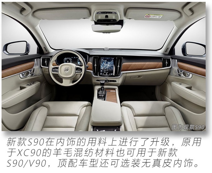 新款S90的外观虽然并没有进行明显的改动,但是像小鸭尾、流水转向灯的加入令S90更加符合自身优雅的定位,同时视觉效果更显高档和灵动感。新车的内饰究竟有什么变化?别急,我们接着往下看。