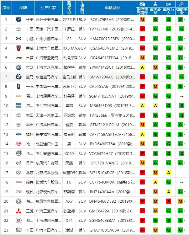 (中保研2019年测试车型汇总)