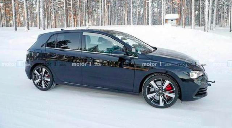 车身侧面,侧面的造型依旧较为紧凑,采用了两条平直的腰线,丰富侧面的层次感。测试车上装配的轮毂造型对于GTI车型来说或许有些“朴素”,实车亮相后是否还会沿用该造型轮毂还未可知,但是我们通过观察发现,该车将配备前后的红色运动卡钳,凸显出全新高尔夫GTI的运动属性。