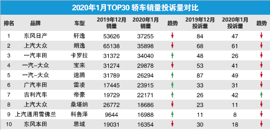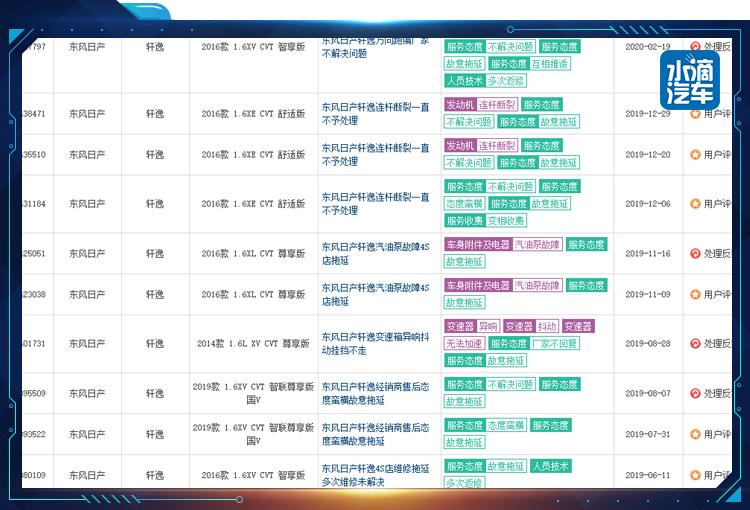 除此之外,我们从车质网发布的2020年1月TOP30轿车销量投诉量对应点评也可以看出,轩逸的质量投诉比例居高不小,虽然整体质量相比2016年的投诉率低上不少,但是在服务端发生纠纷的情况愈演愈烈,并且矛盾也集中在售卖了3年以上的车型,售后可能会成为日产未来要解决的一大问题之一。