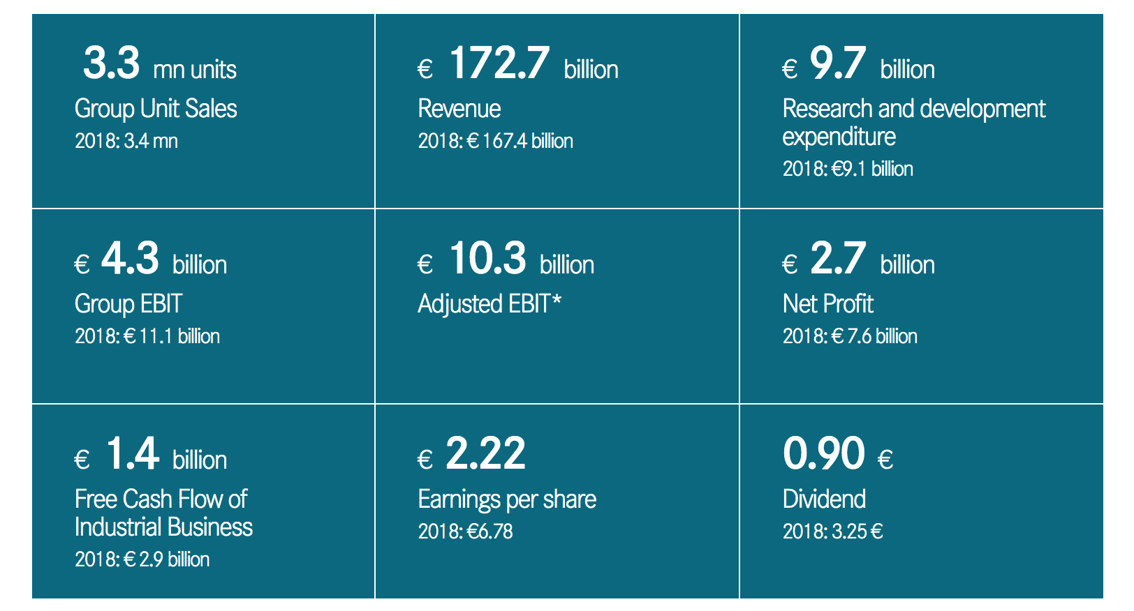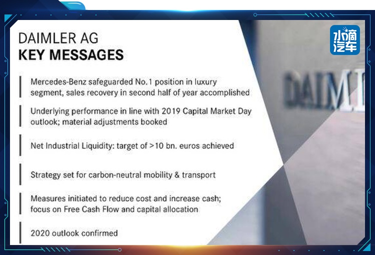 康林松的裁员理由很硬气。不久前,戴姆勒在德国斯图加特总部召开了2019财报发布会,财报显示,虽然戴姆勒2019年总销量为334万辆,基本保持了2018年的量级,集团营业额也增长了3%,达到1727亿欧元。但集团息税前利润为43亿欧元,同比下跌61.2%,净利润为27亿欧元,同比下跌约66.7%。