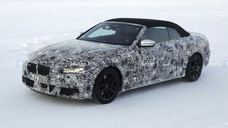 日前,外媒曝光了一组新一代宝马4系 (配置|询价)敞篷车型的冬季测试谍照。尽管谍照中的原型车的进气格栅仍被一层厚厚的伪装包裹,但从车头我们还是能隐约看到被盖住的“巨形格栅”,确认过眼神,是4系无疑了。