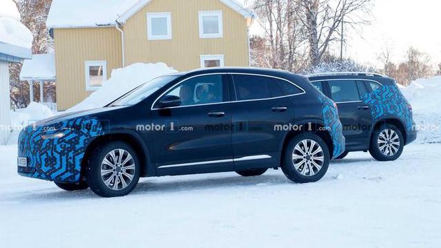 设计层面,虽然是纯电动车型,但毕竟和传统燃油车系列有着千丝万缕的关系,从谍照图来看,我们还是很容易看到奔驰GLA (配置|询价)和GLB的影子。不过嘛,毕竟是纯电动车型,两台新车在细节上还是有不小的变动,这两款车型拥有全新设计的头灯和尾灯,中网和进气格栅造型设计更加偏像奔驰GLC车型,整体前脸,可以参考已经上市的奔驰EQC。