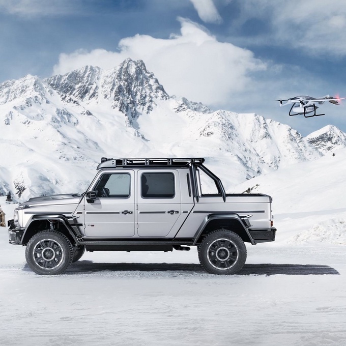 车辆内部焕然一新,座椅采用优质的皮革面料,还可以根据消费者的需求进行个性化定制。与该车匹配的还有一种可选的无人机,由Wingcoptor制造,可以从货箱上进行起飞或降落。