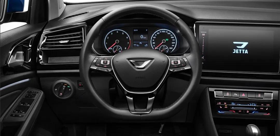 内饰方面,捷达VS7采用大量平直线条,看上去简洁时尚。其中控台略微向驾驶员一侧倾斜,便于驾驶员操作。此外,方向盘造型也与VS5一样,使用三幅多功能方向盘,细节采用钢琴黑饰板装配,提升了一定的质感。此外空调按钮被独立出来,具备实体按键,方便开车时快速操控。