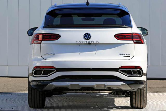除此之外,探岳X的侧面和尾部才是最具有亮点的部位。车顶从B柱开始向下压,营造出了很强的coupe风格。侧面的腰线是不是有似曾相识的感觉?它与探岳的腰线一致,同时也与比亚迪宋Pro的腰线有异曲同工之妙。更为关键的是,探岳X还配有双色版车型,无论是辨识度还是运动氛围都将进一步提升。