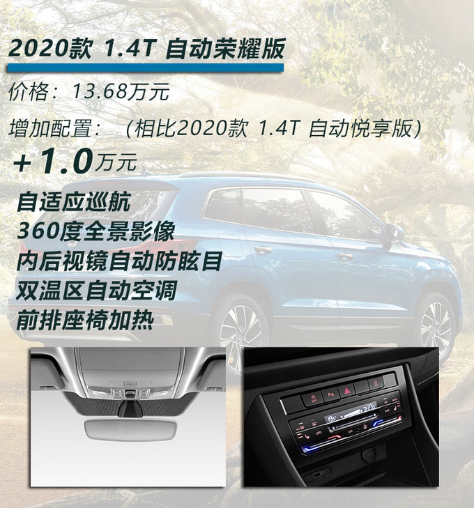 最后的对比则是在全系顶配的自动荣耀版与自动悦享版中进行。在配置上,自动荣耀版要比自动悦享版多出自适应巡航、360度全景影像、内后视镜自动防眩目、双温区自动空调和前排座椅加热等配置。在价格上两者相差1万元。