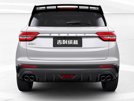 来到吉利缤越的尾部,顶端为运动版独有的熏黑五出口扰流板,中间为高位刹车灯。分体三道杠式的尾灯。底部为展现运动性能的双边共四出排气布局,而且都是真排气,在小型SUV里比较少见。