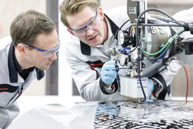 保时捷将该技术比作喷墨打印机。该系统无需使用胶片应用程序,而是以精确的方式将涂料施加到3D组件上,保证不会过度喷涂。通俗来讲,这意味着几乎任何设计都可以印在车身上,但是据保时捷介绍,该技术仍处于早期阶段。因此可能并不支持车身任何一个部件都能进行涂装。