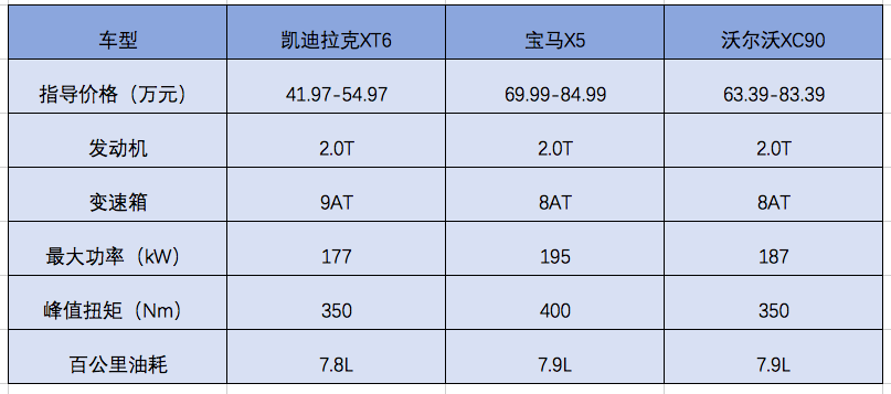 但在我看来,XT6依旧是一台极具性价比的车型。对比中大型SUV市场,以宝马为首的一线豪华品牌,起步指导价格均在70万,即便是二线豪华品牌,沃尔沃XC90的最低配5座版车型,在优惠十万的基础上,起售价也在50万。