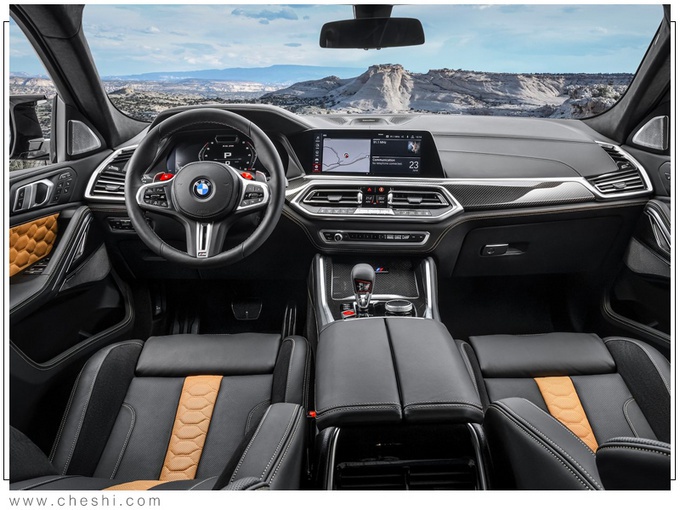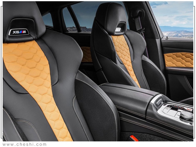 宝马全新X6 M内饰多处加入了碳纤维材质饰板进行装饰,下方一键启动按钮选用了红色,电子档把设计也有所调整。内饰座椅则采用了黑棕双色设计,前排座椅上方还加装了M6车型专属徽章。