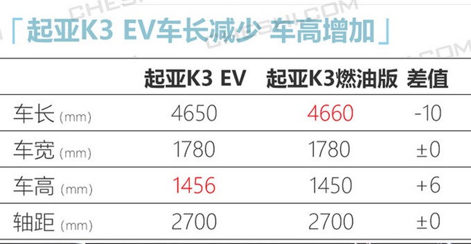全新K3 EV前脸采用封闭式格栅设计,不过黑色饰板搭配直瀑式镀铬饰条,撞色的搭配让其与燃油版车型十分相似,并不像传统“油改电”的前脸造型,因此消费者的接受度会更高。尺寸上,新车较燃油版车型车高有所增加,轴距保持不变依然为2700mm。