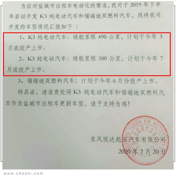 东风悦达起亚在2019年广州车展期间推出了旗下首款纯电动轿车——全新K3 EV,并预计在今年一季度正式上市。网上车市从东风悦达起亚官方获悉,全新K3 EV确定会在3月底正式上市,综合续航里程达到490km。此外,该车还将在7月底投产上市入门低续航版本(380km),或仅对公销售。新车上市后预计会与日产轩逸·纯电、别克微蓝、雪佛兰畅巡 (配置|询价)等车型处在相近的售价区间内。