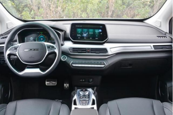 内饰:车内饰采用深色方案,车门饰板和中控台细节均采用木纹和镀铬元素,以增强整体质感。同时,该车还配备了12.3英寸全液晶数字仪表板、9寸悬浮中央控制屏幕以及内置的智能语音交互系统,可通过语音以控制导航、娱乐系统和天窗。