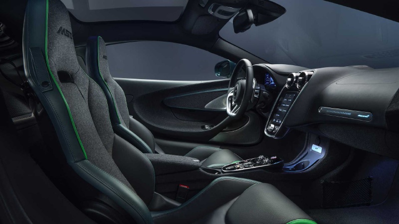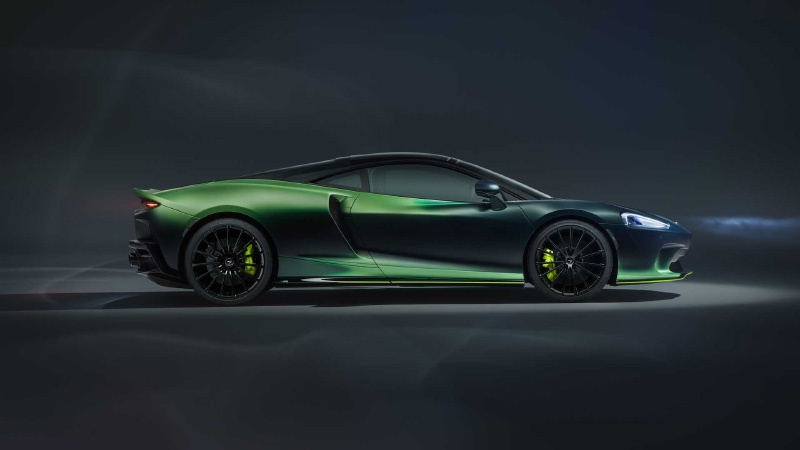 迈凯伦GT定位大型GT跑车,所以MSO并没有增加太多外观方面的运动套件。车身采用了特殊的颜色——Verdant(碧绿色),并且呈现出前后双色渐变的效果,看上去非常独特。