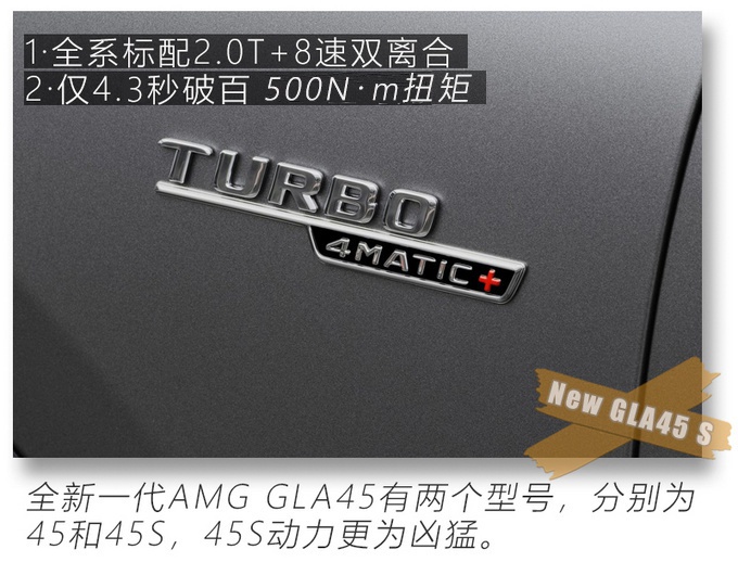 不久前我们对新一代奔驰AMG GLA (配置|询价) 45 S的外观内饰进行了“开箱”解读,大家是不是和我一样,对这款小钢炮SUV的动力表现有所期待呢?作为“一人一机”匠心打造的机械工业精粹,强劲的动力一直是AMG车型最大的看点,究竟新一代GLA 45 S表现如何呢?那么一起往下看。