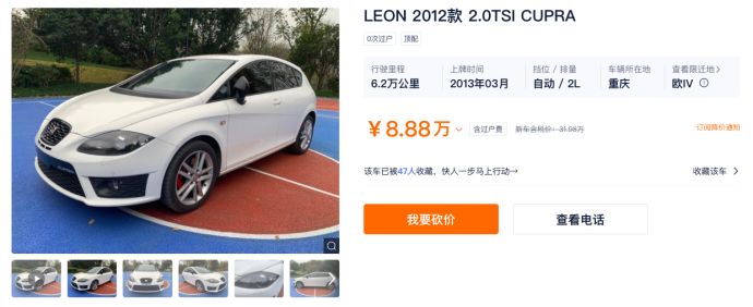 你可能会问,难道就没有进口的小钢炮让我选吗?那你快瞅瞅这台西雅特LEON它香不香?作为这哥儿仨当年指导价(29.46万元)最贵的车型,如今的二手车价格竟然还没有国产GTI保值。这也难怪,西雅特这个品牌,在国内的知名度太低了,所以销量不好也是意料之中的事。好在充满攻击性的前脸,犀利的头灯再配上18英寸的大轮毂,也让这台LEON赚到不少回头率。