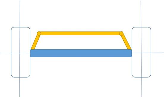 按照阿克曼机构设计出来的转向杆件(转向导杆、转向羊角、左右车轮转轴连接线)连接形状大概是个等腰梯形,这样在转弯的时候,可以保证车辆在转弯的时候,弯道内测车轮的转向角比外侧车轮转向角大一点点。当然这个不只是组成一个等腰梯形那么简单,转向杆件的长短和倾斜角也是要计算进去的,所以转向的调校是很复杂的。