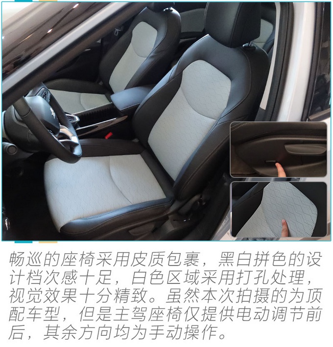 畅巡的内饰是明显的简洁实用风格,没有什么浮夸的设计,相反空调控制、挡把等各个区域均采用传统的实体按键设计,一定程度上保证了实用性,在配置方面畅巡全系标配了前排座椅加热,十分厚道,双液晶屏幕也是当下流行的设计,自动驻车、车道偏离预警、并线辅助等安全辅助配置也十分齐全,完全能够胜任日常家用。