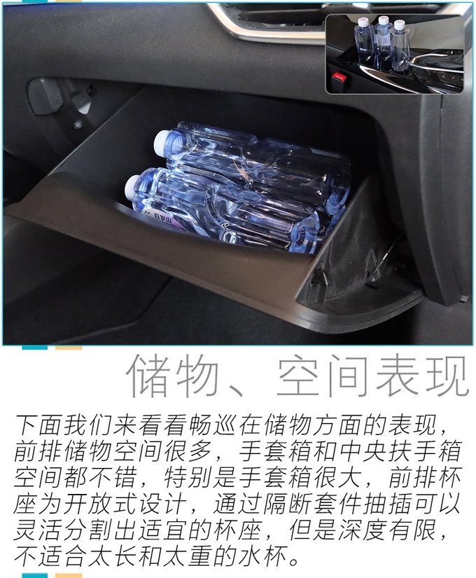 畅巡的空间表现十分出色,身高183cm的体验者坐进内部也丝毫不显局促,同时座椅内部填充十分柔软,配合上顶部的大尺寸全景天幕,即使长途行车也丝毫不会感到疲惫、无聊。此外畅巡的便利性储物设施也十分丰富,后备厢规整且拥有足够纵深,绝对能够满足作为家用车日常出行的装载需求。就空间和配置层面来看,畅巡能够得到一个非常高的评价,至于新车驾驶感受如何?续航是否扎实?请继续关注我们后续文章。