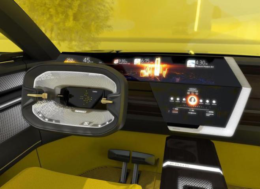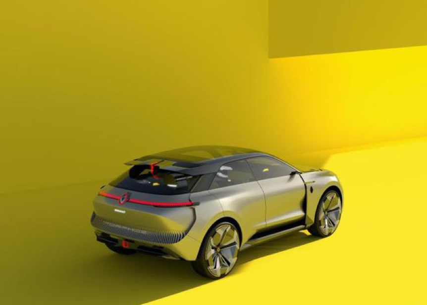 外观方面,未来感很强,细长的中网和前大灯连成一体,中网内采用竖状的灯条组成,十分抢眼。中间的雷诺车标外轮廓似乎也是用发光物体包围。封闭的下进气口采用梯形设计,可以看到也是采用竖状元素组成。保险杠两侧的雾灯及通风口采用双三角形设计,使前脸更具侵略感。