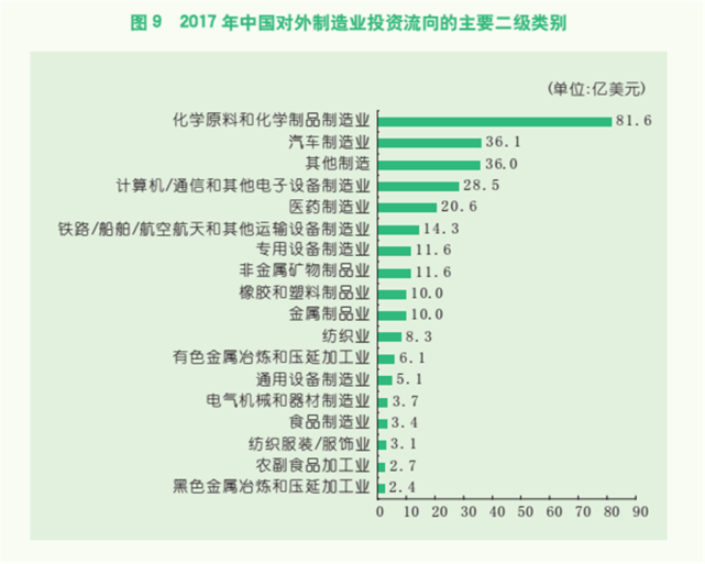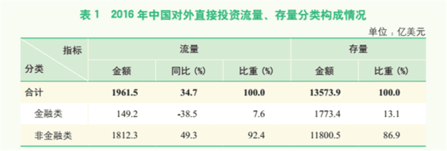 4、 2016年我国对外投资创新高,达到1961.5亿美元,投资存量破万亿美元。2016年及2017年对外投资主要方向为汽车制造、电子通讯、化工;