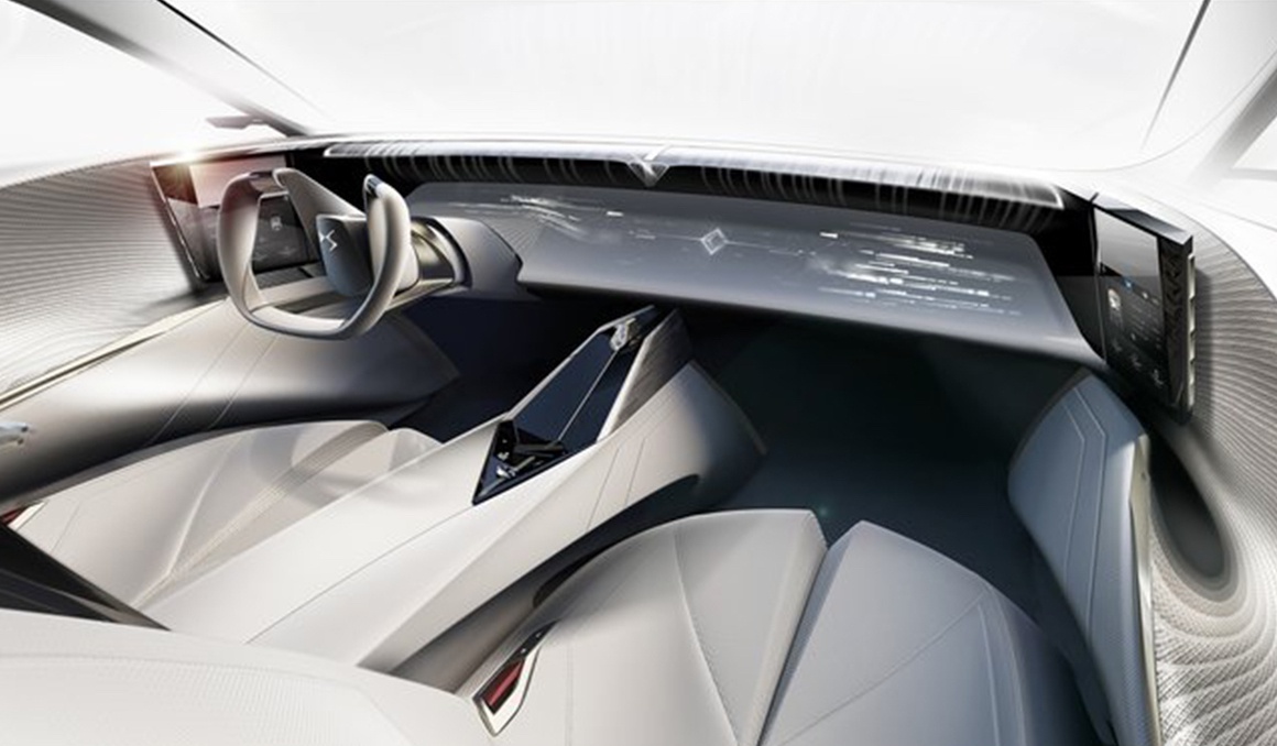 外观方面,前脸采用“E-TENSE”电动风格设计。配备了矩阵式设计的LED大灯组,前侧格栅同样采用未来技术,由两块大尺寸高清屏幕组成,屏幕下方配有“DS AUTOMOBILES”的标志,科技感与未来感相结合。车身侧面线条立体分明,配有直径为23英寸的超大尺寸轮圈。车尾部分,运用大量不规则图形设计,科幻感十足。整体造型十分犀利。