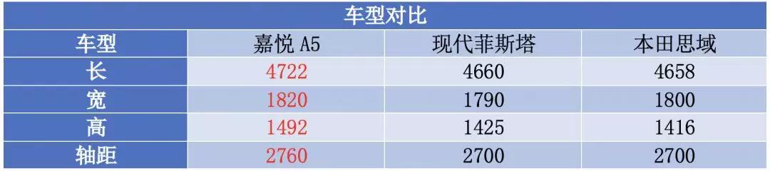 通过上面表格不难看出,嘉悦A5的车身尺寸已经超越了部分合资中型车,即便对比同级“老大哥”本田思域以及现代菲斯塔,也呈现出碾压的态势。反观该车8.46万元的起售价格,无不看出江淮汽车十足的诚意。