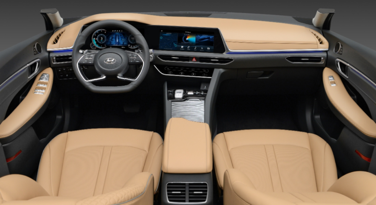 在内饰设计上,第十代索纳塔应该是目前B级车中最具设计前沿的车型了。首先就是一体式的双12.3英寸液晶仪表及显示屏。