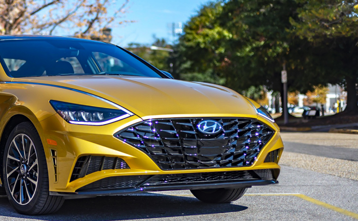 车身侧面,由隐藏式LED日间行车灯和沿前翼子板延伸到车窗的镀铬饰条构成的“Dynamic Lasso”造型,让第十代索纳塔更具运动感。