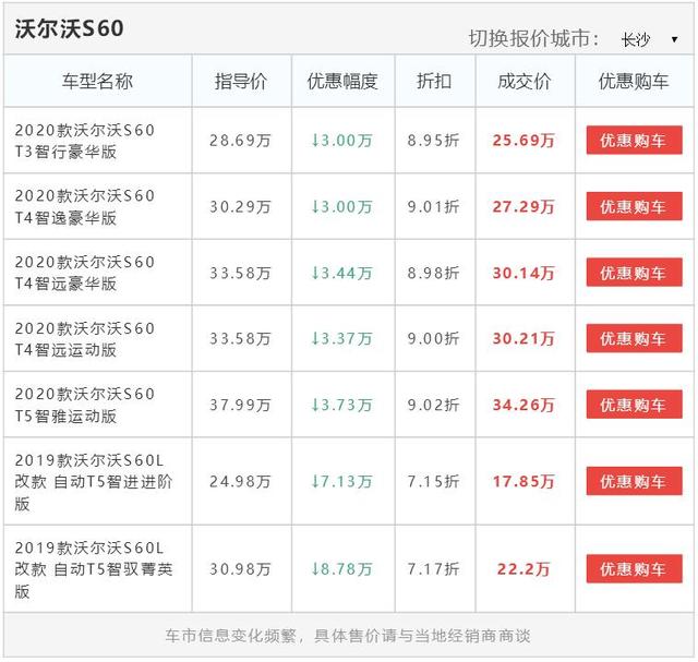 据网上经销商报价,停产在售的2019款沃尔沃S60L目前有7-8万元左右的优惠,优惠后终端售价不到18万元。