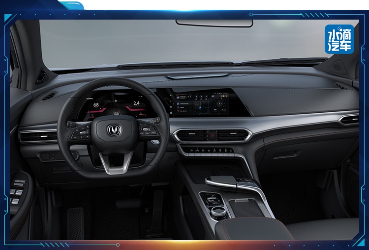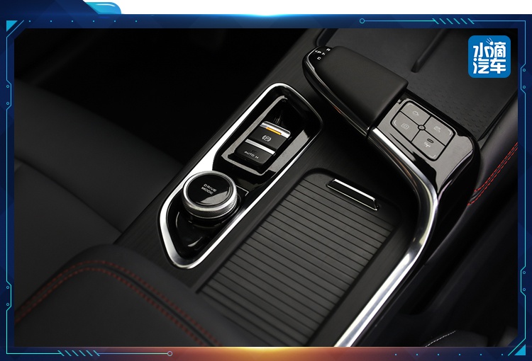 首先是换挡手柄摒弃了传统的设计,来源于歼20驾驶舱推杆的灵感,横向设计着实有未来飞船驾驶的感觉。