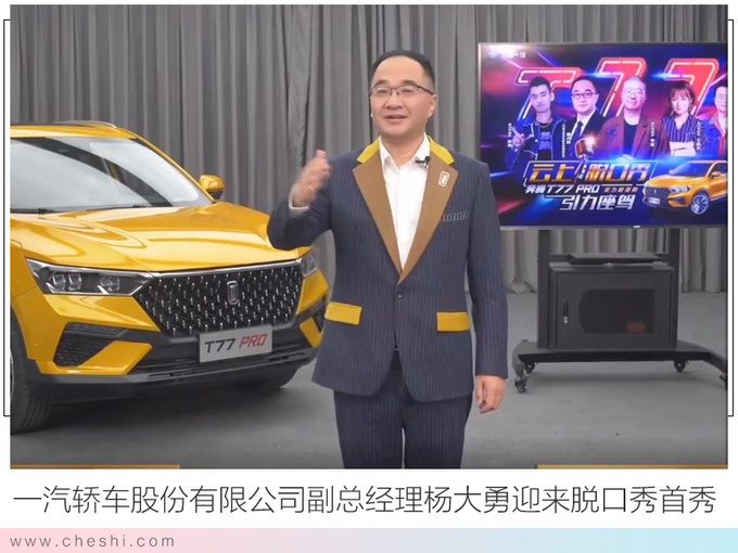 T77 PRO的此次上市是以一种“云脱口秀”的形式在线上进行,邀请到了李诞、思文、程璐、庞博等知名脱口秀演员。与此同时,一汽轿车股份有限公司副总经理杨大勇也迎来脱口秀首秀,“诞腾”、“思奔”的谐音梗更是圈粉无数。全新的活动形式让奔腾T77 PRO还未上市就赚足了眼球。