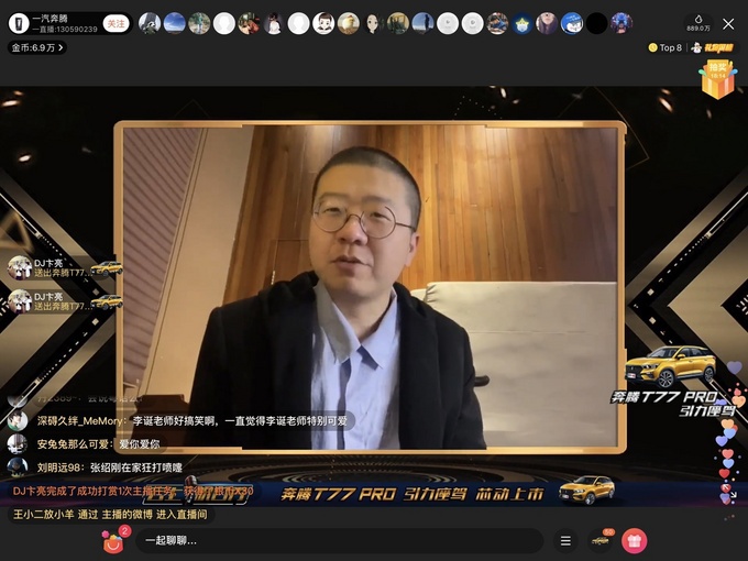 知名脱口秀演员庞博、李诞、思文、程璐通过直播连线齐聚一堂,讲述何为“颜值与实力并存”,笑谈居家生活的智能化与汽车发动机的动力性能……奔腾T77 PRO的卖点在逗趣中被浓缩成了一个个与笑话与段子,直播间内的观众则将弹幕、礼物刷屏到底。