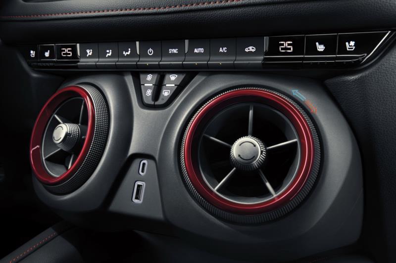 其实它的空调出风口造型设计与科迈罗有些相似,旋转外圈调节温度,旋转内圈调节风量。