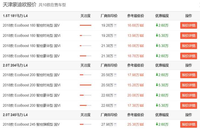 有问题也不打紧,能改就好,可更为严重的是,在最新上市的2018款蒙迪欧车型身上,厂家居然对其"喊"出了19.28-27.98万元的指导售价,别的都不说,单就其搭载1.5T发动机的车型要价19.28万元起的这一行为,着实就将最后一批信任客户给拒之了门外。要知道,同样的价格哪怕再没有选择,消费者也可以去选一款动力不俗的合资高颜值A级车,毕竟拥有同样1.5T动力的本田思域在售价上就还能省好几万。即使不降级,那去买同样大品牌的1.5T本田雅阁也已经是绰绰有余,更别说同为美系还有4-5万多元优惠的别克君威车系了。