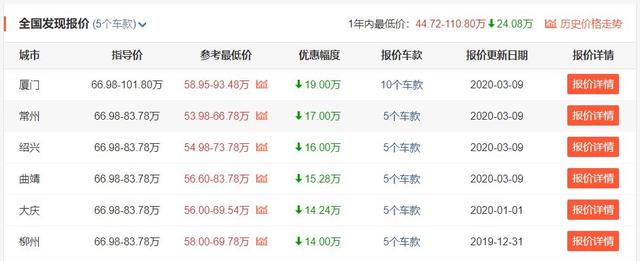 说实话,我知道全新一代发现外观的改变不一定能让很多人接受,但是内饰方面的改变还是让它现在更加符合百万级suv的标准了,驾驶感受方面公路驾驶感受也有了很好的提升,强大四驱系统对于征服烂路情况更不是什么问题,所以我们是不是也应该再给他多点包容?价格方面,指导价66.98-83.78万元的发现5目前经销商给出的参考价是58.95-66.78万元,最高优惠的车型是发现5 2020款 3.0 V6 HSE版本,从指导价83.78万降到了66.78万元,一降就是17万,对于想要买一台路虎SUV的朋友们来说,这个价格显然是可以考虑考虑的。