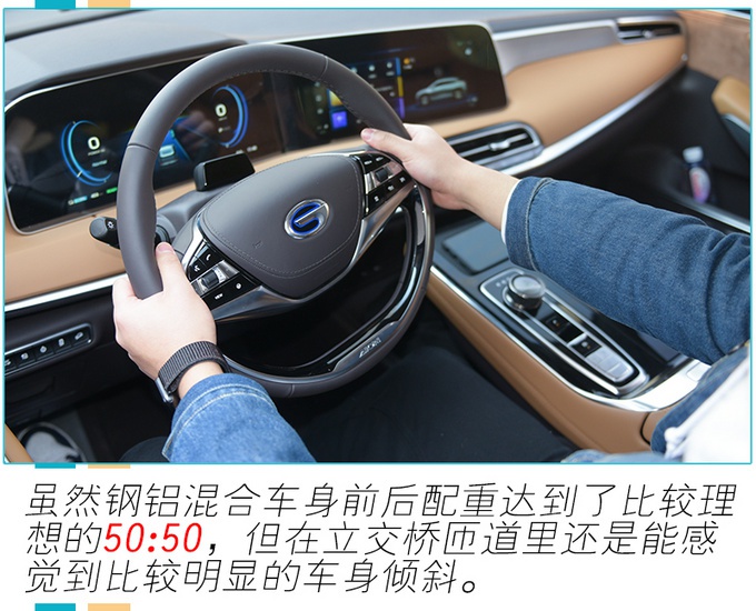 我想如果能够配备空气悬架肯定会有所改善,但显然那也就意味着成本和最终售价的进一步上升。所以Aion LX在操控性和豪华感之间做出了:给你极致加速,也给你舒适的悬架设定,只好在弯道上略有遗憾。和弯道性能相似,Aion LX的制动踏板也倾向于舒适化调校,至少初段制动力输出没有彰显它高性能的特征,而且制动时会有比较明显的车身俯仰回弹。