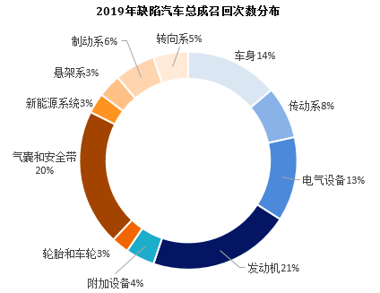汽车全身上下零部件众多,并不能为汽车质量不过关而掩饰。根据国家市场监督管理总局公布的2019年召回信息显示,发动机、气囊和安全带、电气设备、车身、传动系统、制动系统、转向系统等问题,使得汽车缺陷问题越发突出。