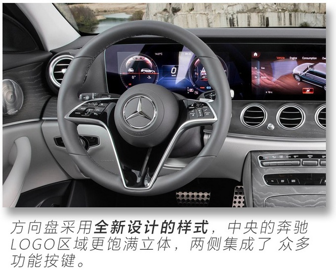 动力方面,新款奔驰E级换装了新的M254系列四缸发动机,E 350后驱车型和E 350 4MATIC将搭载全新2.0T直列四缸涡轮增压发动机+48V动力系统,最大功率259Ps,峰值扭矩370N·m。E 450车型将搭载3.0T+48V混合动力系统,最大功率362Ps,峰值扭矩500N·m,与之匹配的是9速手自一体变速箱。此外新款E级还将推出一款插电式混合动力车型E 350 e,该车型将搭载2.0T+电动机的动力组合,与之匹配的是8速湿式双离合变速箱(8G-DCT)的插电式混合动力模块,纯电动模式NEDC续航为50km,电机最大输出功率为75kW,综合输出功率为160kW。