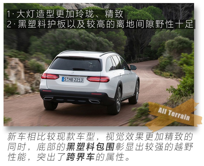 喜欢SUV的自由自在,又喜欢旅行车的独特调调,现在你有了一个全新的选择,那就是奔驰E级 (配置|询价)All-Terrain。对于这款车型,我想你可以理解为类似奥迪A6 Allroad和沃尔沃V90 (配置|询价) CrossCountry:融合旅行车和SUV车型特点的跨界旅行车。新车究竟能否将奔驰的豪华与旅行车的优雅以及SUV的野性完美融合?本期新车开箱我们就来看看吧。