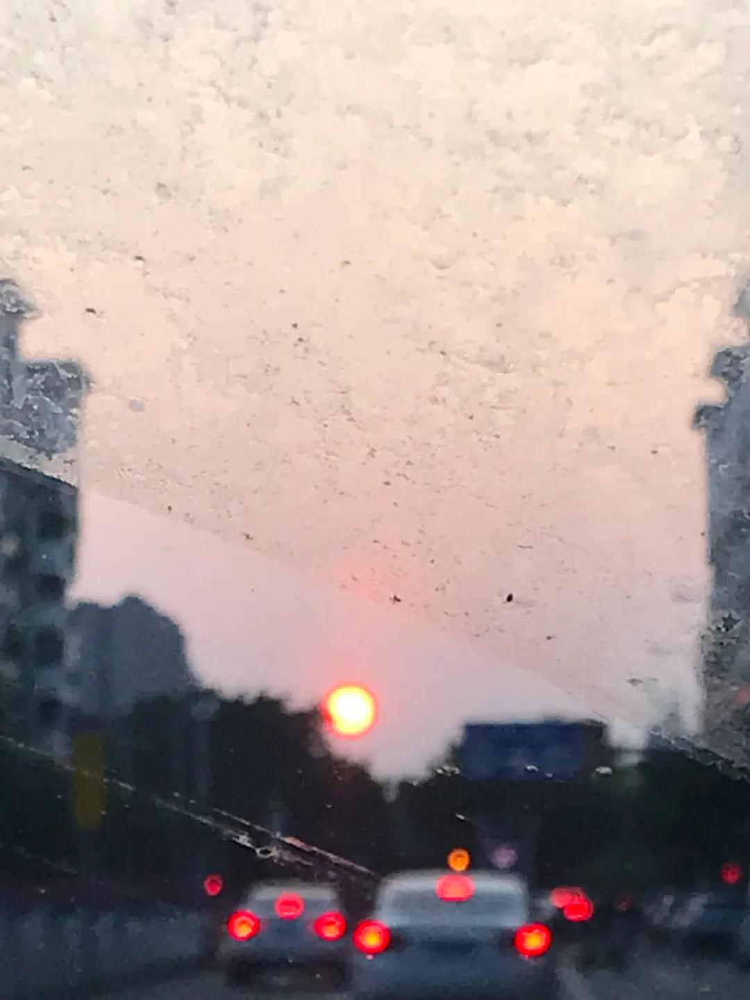 不用说,这挡风玻璃已经看不清前方的路。小编在洗车前打算拍一张唯美的夕阳照,也被这挡风玻璃上的脏东西给挡住了。