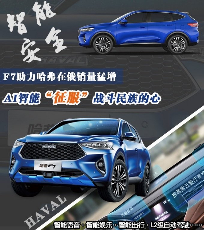 根据相关数据显示,2019全年俄罗斯市场共销售新车176万辆,共有11家中国乘用车品牌在俄销售。其中,哈弗SUV以全年累计销量12284辆,同比增长282%的成绩成为俄罗斯民众最喜爱的中国车,而AI智能网联SUV-哈弗F7的贡献可谓功不可没。