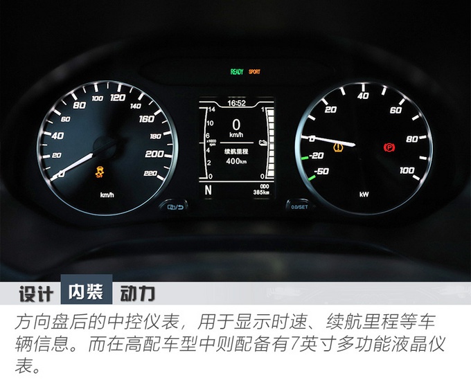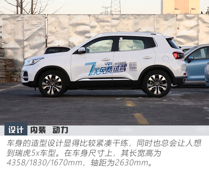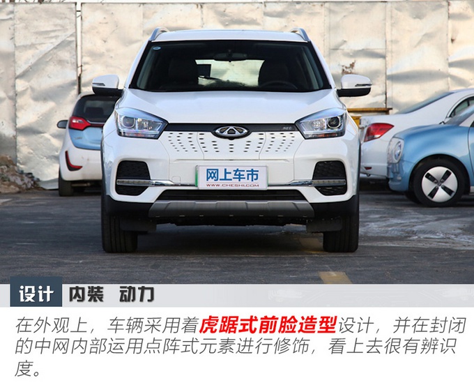 可见在外观上,奇瑞新能源瑞虎e沿用了奇瑞瑞虎家族Chery Design设计理念,其中虎踞式的前脸造型设计,让车辆很有辨识度,并且封闭式中网的配备,让车辆的新能源特征更为明显。在这基础上,干练紧凑的车身造型令它的时尚感倍增。而尾部的设计整体层次很分明,与整车造型得到了很好的承接。总之,多种前卫元素结合在一起,使得车辆看上去极具个性气息。那么对于在内饰和配置上表现如何?我们继续往下看。