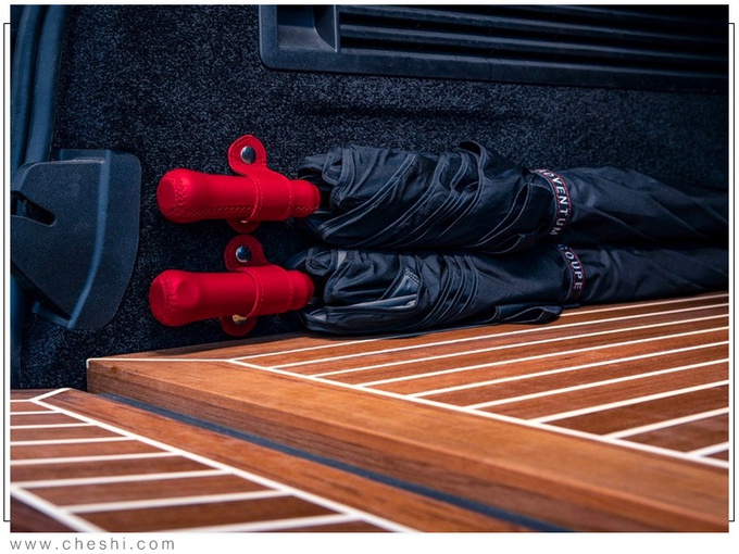新车在车头车尾的设计上没有做出改变,而最明显的变化来自于车侧的双门设计,取消了原来的C柱位置,从B柱直接延伸到车尾。内饰采用了大面积高档红色皮质包裹,脚垫以及后备箱地台都使用纯木地板打造,车内氛围十分奢华。