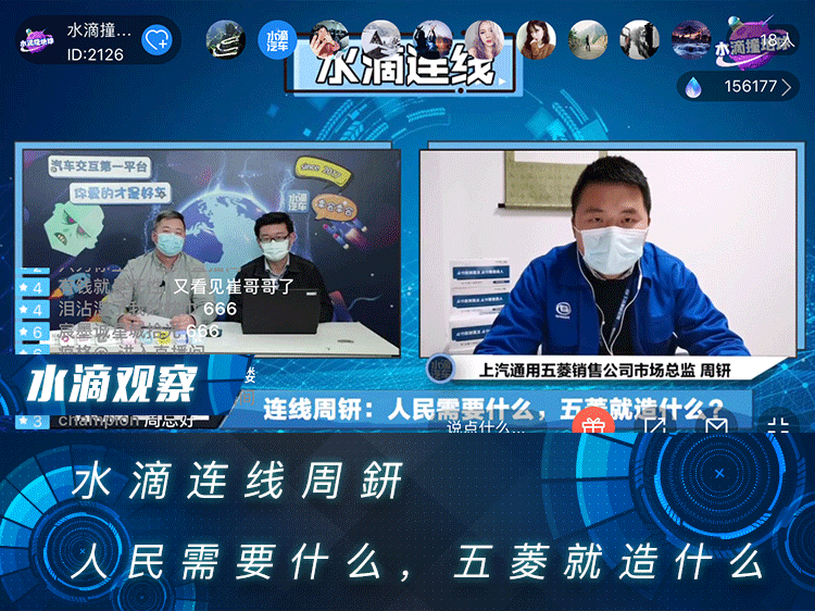 3月13日,上汽通用五菱销售公司市场总监周鈃做客《水滴撞地球》栏目,向水滴汽车APP讲述了五菱造口罩的“初心”。